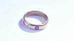 ANNEAU large en or jaune serti d'un diamant rond entre deux rubis. Poids brut : 6 g - Tour de doigt : 58