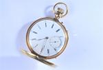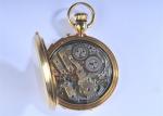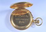 MONTRE gousset à sonnerie, boitier en or jaune, décor gravé d'un monogramme "R.P" noirci. Cadran blanc et trotteuse, chiffres en noir. Mouvement "Maison WURTEL, E. PIEFORT Sucr, passage Vivienne 38 8 40, Paris"