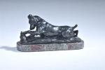 MONARD Louis de. "Chien terrier retournant un crabe", bronze à patine brune présenté sur un socle de marbre. H. 10 - L. 19 cm