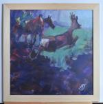 SUSSIN Jean-Yves. "La chevrette au débuché", acrylique et pastel sur panneau monogrammé en bas à droite. 29 x 21 cm