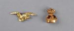 MONTRE pendentif en or jaune en forme de sceau agrémenté de citrines ovales serties en cabochon et frise de perle d'or. Le mouvement présenté en dessous à cadran rectangulaire. Poids brut : 19,45 g ; on y joint une broche porte montre en or jaune en forme d'aigle les ailes déployées. Poids : 12,30 g
