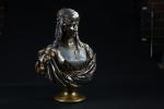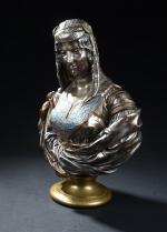 CORDIER Charles Henri Jospeh (1827-1905). "Juive d'Alger : Jewish Woman From Algiers", épreuve en bronze argenté, doré et émaillé bleu, signée sur l'étole "CORDIER 1862". H : 45 cm