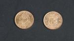 PIECES (deux) en or 20 FS, 1935. Poids : 13 g