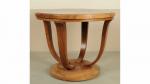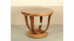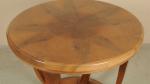 GUERIDON (petit) circulaire en noyer et placage de noyer, piétement à quatre montants cambrés reposant sur un socle à doucine. H. 62 - Diam. 76 cm