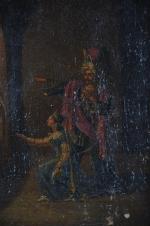 ECOLE FRANCAISE vers 1820. Scène orientaliste. Huile sur toile. 28 x 24 cm. (écaillures, trous)