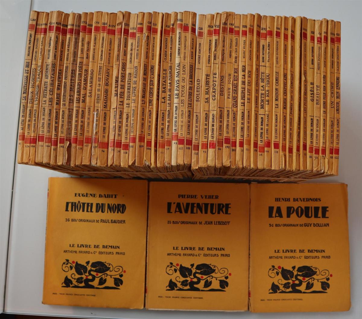 Une série de 49 volumes de la collection "Le Livre de Demain" publiée chez Fayard dans les années 1920-1930, tous illustrés de gravures sur bois.