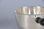 CASSEROLE à BOUILLIE en argent à manche d'ébène, monogrammée. 19ème...