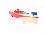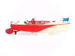 JEP (Paris, années 36-40 puis 45-50) canot Ruban Bleu n°0 tôle laquée crème/rouge vif, moteur fonctionne , L : 33cm, état B.o