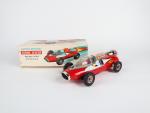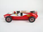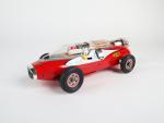 DAIYA (Japon, v.1964) voiture de course ASTRO RACER, en tôle lithographiée rouge/blanc , moteur électrique (non essayé) , compartiment moteur sain, L : 30cm, A.b