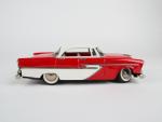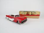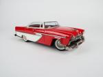 ALPS SATO (Japon, 1957) Plymouth Belvédère sedan 1956 , tôle laquée rouge/blanc, moteur électrique avec inverseur marches avant/arrière (non-essayé) , L : 29 cm, compartiment à piles sain, B.o