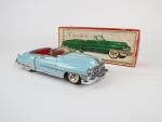 ALPS (Japon, 1953) Cadillac convertible 1952 , tôle laquée bleu ciel, friction fonctionne, 29 cm, état B+.b