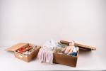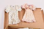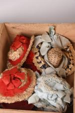 POUPEE à tête en biscuit moulé et pressé, corps en composition. Tête signée "déposé tête Jumeau 8" et Corps signé "Bébé Jumeau" en bleu. H. 48 cm. Avec vêtements et lots de chapeaux