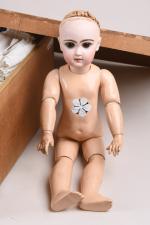 POUPEE à tête en biscuit moulé et pressé, corps en composition. Tête signée "déposé tête...