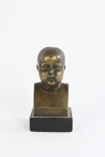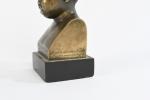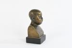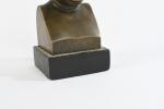 TREU, Philippe Jakob (1761 - 1825), d'après. « Le Roi de Rome ». Petite buste en bronze patiné, gravé en façade "Fois. Cles. Napoléon Roi de Rome Né à Paris le 20 Mars 1812" et sur le coté "sculpté d'après nature à Meudon au printemps 1812 par Treu de Bâle". H. 9,5 cm. Socle de granit belge.