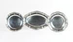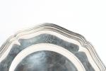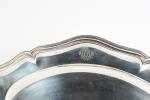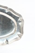 PLAT ovale et deux PLATS ronds modèle filet contour en argent poinçon Minerve. signature "Cardeilhac Paris". pour le plat ovale et un plat rond. Signature de LAIGNIEZ pour le second plat rond. Monogrammés. "LV". Début du XXème siècle.