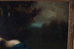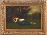 HENNER, Jean Jacques (1829-1905) attribué à. Nu au drap bleu. Huile sur toile. 38 x 54,8 cm. Cadre d'origine en bois et composition dorée.
