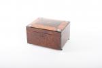 CAVE A CIGARE en placage de loupe de thuya, os, laiton et nacre. Intérieur à...