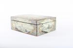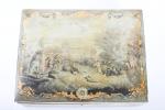 COFFRET peint en grisaille à scène de chasse à courre,...