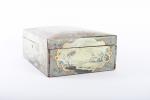COFFRET peint en grisaille à scène de chasse à courre, ouvrant à un abattant découvrant...