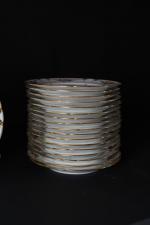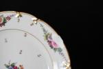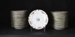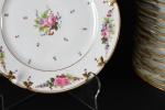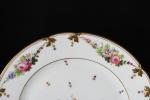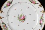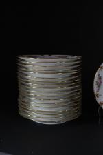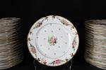 CHAMPROUX, Allier et HONORE, Paris éditeur, fin du XIXème siècle - Suite de trente-six assiettes à dessert en porcelaine à décor de fleurs et dorure. Signées. Diam. 22,5 cm (une assiette ébréchée)