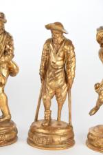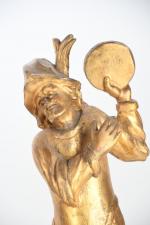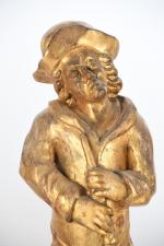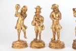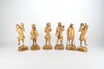 ECOLE ITALIENNE de la fin du XVIIIème siècle. Personnages de la Comedia dell'arte. Suite de six statuettes en bois sculpté et doré. H. entre 44 et 46 cm