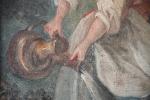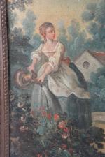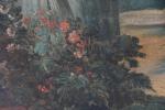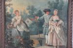 ECOLE FRANCAISE du XVIIIème siècle. "Scène de parc au jardinier", huile sur toile, ancien panneau de trumeau. 52 x 51 cm