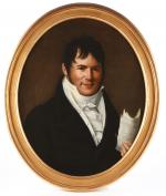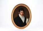 ECOLE FRANCAISE vers 1810, entourage de Henri François REISENER. "Portrait d'un membre du Lycée Napoléon", toile ovale. 73 x 60 cm. Une inscription en haut à droite "Lycee Napo.. 7 bre 1810"