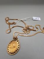 CHAINE de cou OR de 51 cm avec une médaille à la Vierge OR non gravée au dos - poids 9.5 g