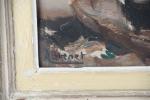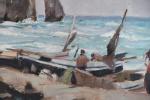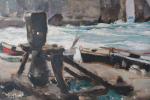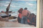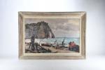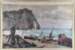 BRENET, Albert (1903-2005). "Bateaux au carénage à Etretat" , huile...