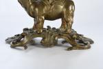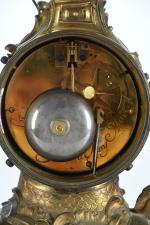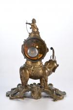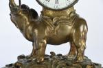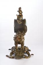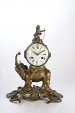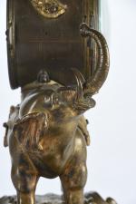 PENDULE à l'éléphant en bronze anciennement doré, le cadran posé...