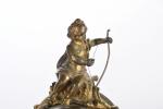 PENDULE à l'éléphant en bronze anciennement doré, le cadran posé sur le pachyderme, surmonté d'un putto à l'arc, cadran signé Le Paute Hger du Roy Au Luxembourg. Style Louis XVI, XIXème siècle. H. 42 - L. 32 cm. (Petits éclats au cadran)