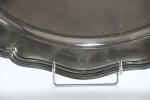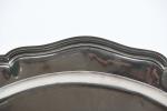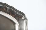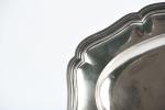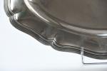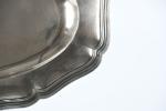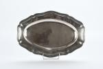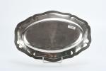PLAT (petit) ovale en argent, bordure contours. Gravé d'armoiries. XIXème siècle. L. 38,5 cm - Poids : 846 g
