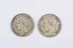 Lot XIXe : BELGIQUE - 5 Francs Léopold 1er 1850 & Léopold II 1870 - 2 monnaies argent : 49,57 g