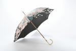 CHRISTIAN DIOR - Parapluie en nylon, motif feuillage et renard, avec marque sur la toile, et sur une bague sur le manche.