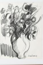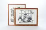 MAILLARD, Claude (1926-2006). Artiste saumurois. En pleine lecture. Dessin au feutre sur papier non signé mais daté (25 juillet 1968) en bas à droite. 33 x 41 cm (feuille). Encadré. On y joint, Bouquet dans un vase. Dessin au fusain sur papier signé et daté (1967) en bas à droite. 40 x 30 cm (à vue). Encadré.