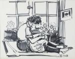 MAILLARD, Claude (1926-2006). Artiste saumurois. En pleine lecture. Dessin au feutre sur papier non signé...