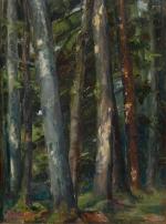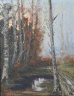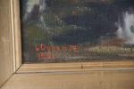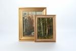 DURANTE, Luigi (milieu du XXème s.). Peintre d'adoption angevine, né à Polcenigo (Italie). Petite mare au couchant. Huile sur toile signée et datée (1951) en rouge en bas à gauche. 35 x 27 cm dans son cadre d'origine signé Bruel-Légal à Angers. On y joint, du même artiste, Etude de sous-bois. Huile sur contreplaqué signée en rouge en bas à gauche. 29 x 22 cm. Cadre d'origine.