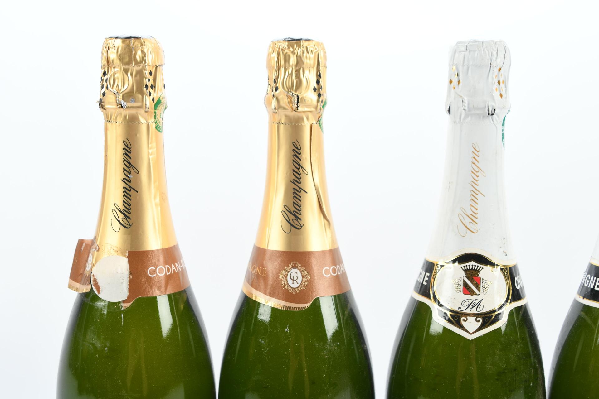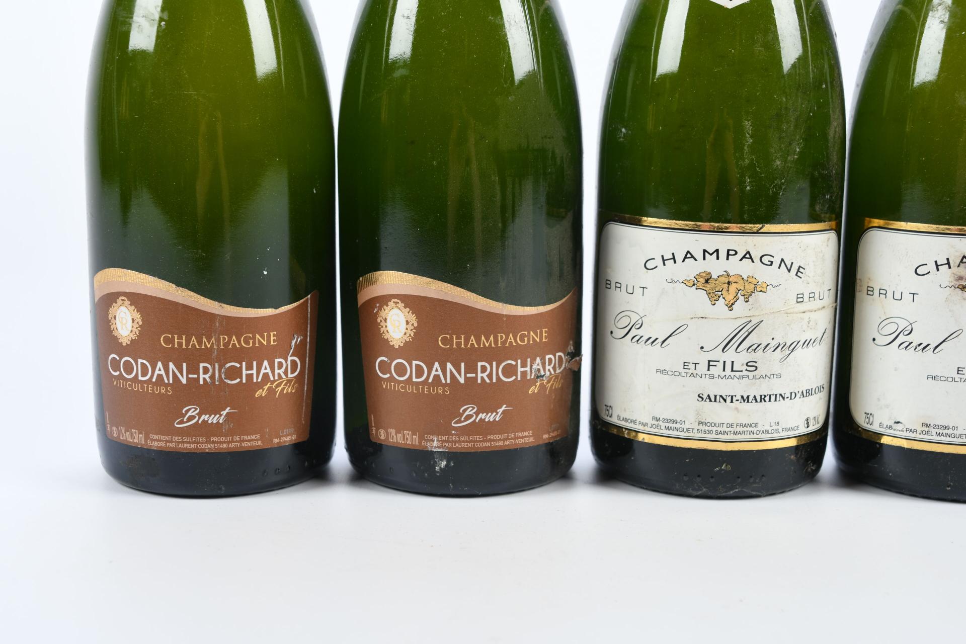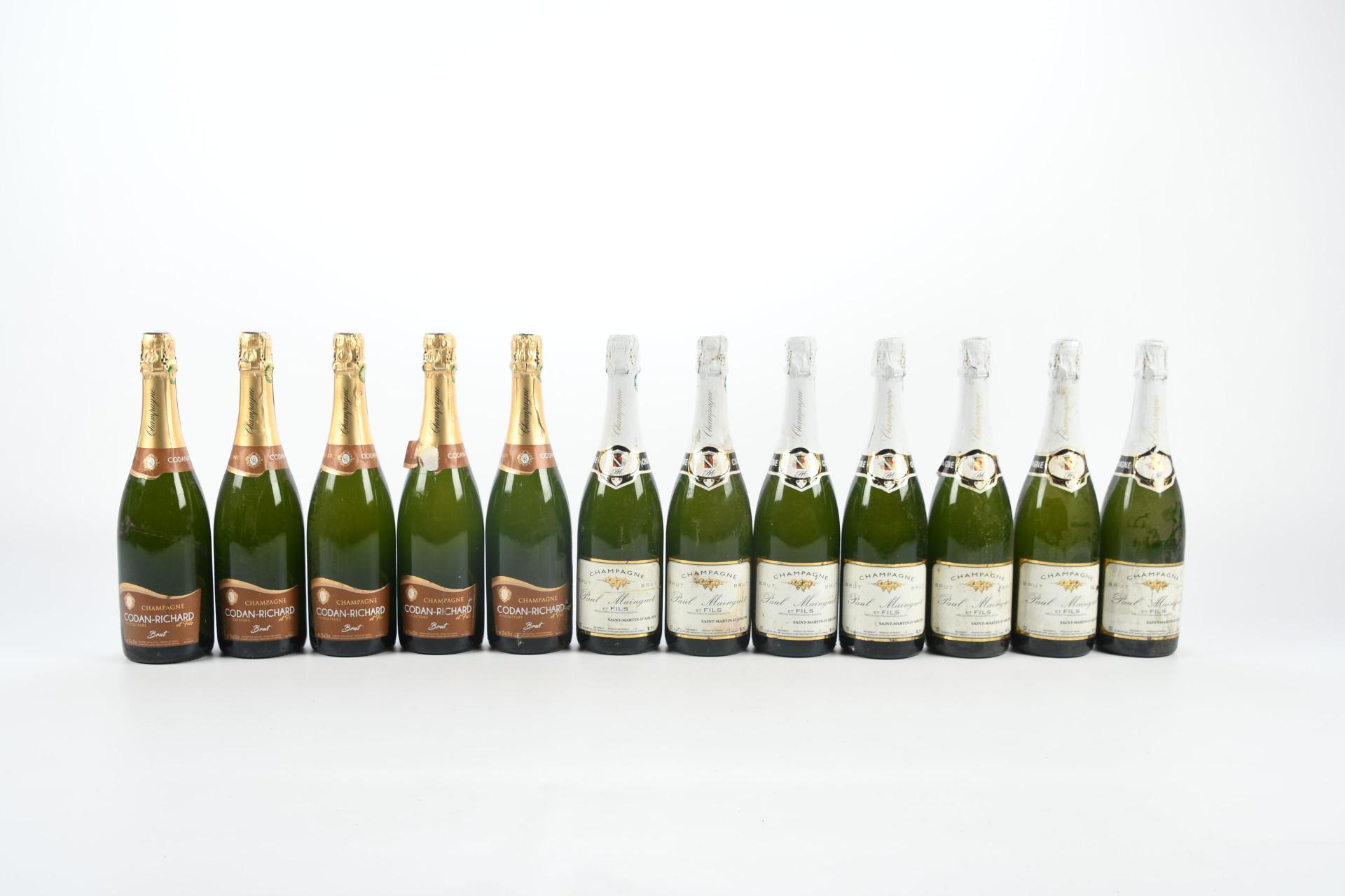 LOT de VINS de CHAMPAGNE : 7 Blles Champagne, Paul Mainguet, brut. 5 Blles Champagne, Codan-Richard, Brut.