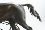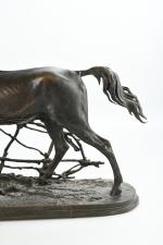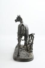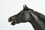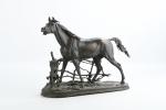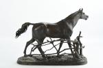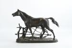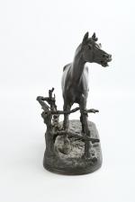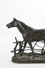 Pierre Jules MENE (1810-1879). "Djinn à la barrière" 1846, Bronze à patine brune signé et daté sur la terrasse. Titré sur la tranche de la terrasse : Djinn étalon Barbe. H : 29,5 - L : 37 cm. Belle fonte ; la plus grande des trois tailles de ce modèle.