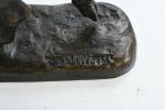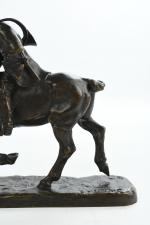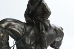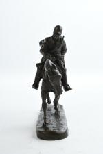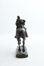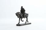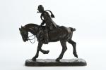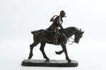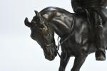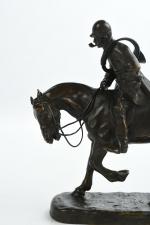 D'ILLIERS, Gaston (1876-1932). "Veneur à la pipe" ou "piqueux au trot", Bronze à patine brune signé sur la terrasse. H : 20 - L : 22 cm. Fonte d'édition