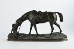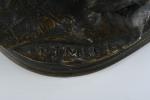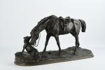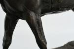 MENE, Pierre Jules (1810 -1879). "Jument au box avec chien", Bronze à patine brune signé sur la terrasse. H. 25 - L. 49 cm. Belle fonte ancienne.