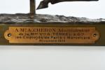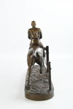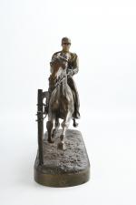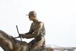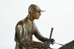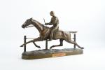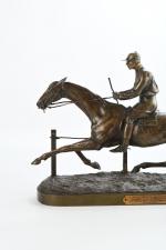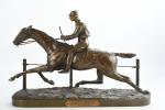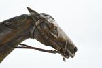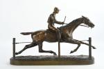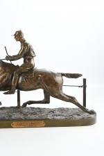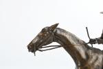 Henri de VAINS (1848-1886). "Le trotteur", Bronze à patine brune signé sur la terrasse. H : 33 - L : 50 cm. Porte sur la tranche de la terrasse un cartel en cuivre : "A Mr A. CHERON Administrateur de la Maison Vve A Tonnel et Cie. Les employés de Paris et Marcelclave. Novembre 1909". Belle fonte ancienne