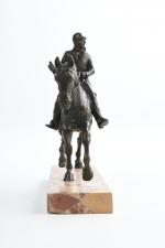 Gaston d'Illiers (1876-1932). "Cavalier Vernet" ou "Veneur", Bronze à patine brune signé sous le flanc...