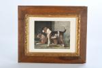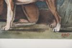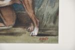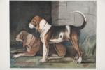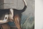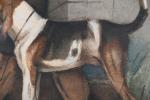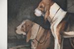ECOLE FRANCAISE début XXème. "Deux chiens de vénerie", aquarelle signée d'un monogramme h de S C ?, titrée." Conétable et Boléro batards normands" . 25 x 30 cm. Bel encadrement.