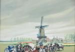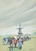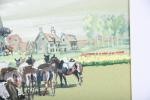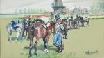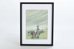 CHEFSON, Gabriel dit LAMOTTE (1920-2005). "La pause des hussards", gouache sur papier signée en bas à droite. 29 x 21 cm