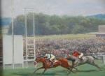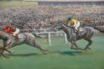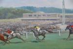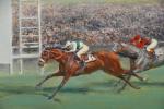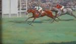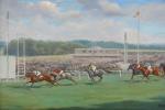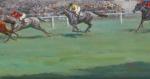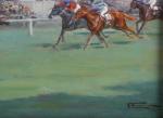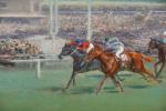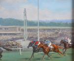 Franck ELIM, Elie Le Bault de La Morinière dit, (1884-1954). "Arrivée du Grand Prix de Paris 1941", huile sur panneau signé et daté en bas à droite. 27 x 41 cm.