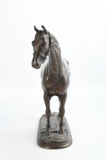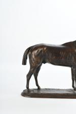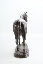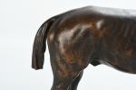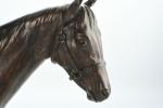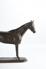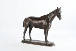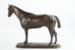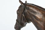 Pierre LENORDEZ (1815-1892). "Gladiateur par Monarque et Miss Gladiator" célèbre cheval de courses gagnant en 1865 du Derby d'Epsom et du Grand Prix de Paris. Bronze à patine brune signé sur le terrasse. H : 32 - L : 39 cm. Edition Boyer