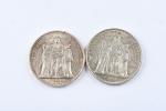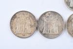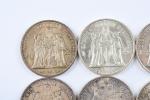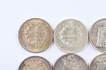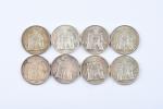 MONNAIES d'ARGENT : 8 x 10 Francs Hercule années 1965 (4); 1966; 1967; 1970 (2). Poids : 200,4 g.