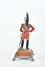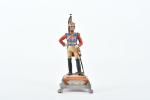 LE CIMIER. Soldat "Mousquetaire gris 1815" en plomb à décor polychrome sur un socle avec cartouche. Hauteur totale : 15 cm. Signé de Charles Conrad.