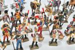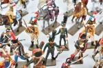 STARLUX Lot de soldats de plomb figurant les armées du premier empire comprenant l'empereur, des généraux dont 18 cavaliers et 48 fantassins. On y JOINT Del prado, le général Bonaparte à la bataille de Rivoli, un canonnier à cheval, un cuirassier à cheval. Et d'une autre marque un cavalier et sa monture.